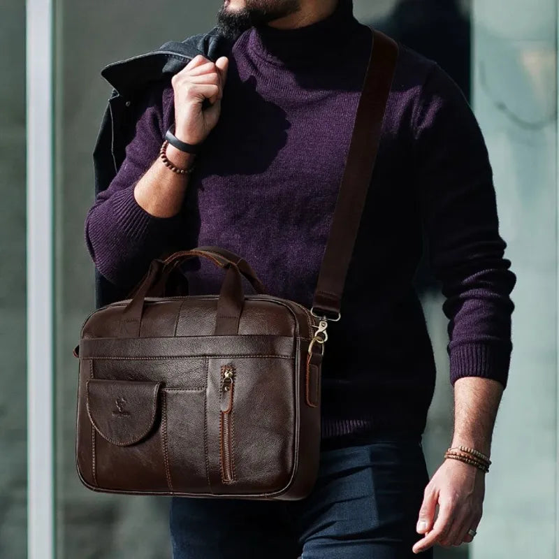 Sa conception ergonomique et sa bandoulière réglable garantissent un confort optimal en déplacement. Son design sobre s’adapte à toutes les tenues, du costume professionnel à la tenue décontractée. Grâce à sa fermeture éclair renforcée, vos documents et appareils restent protégés des aléas du quotidien.