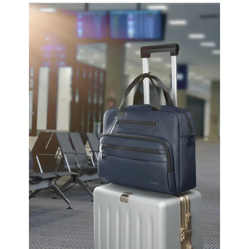 Ce modèle peut contenir un ordinateur portable jusqu’à 14,1 pouces, une tablette, des dossiers et divers accessoires. La disposition intérieure garantit un rangement clair et sécurisé.